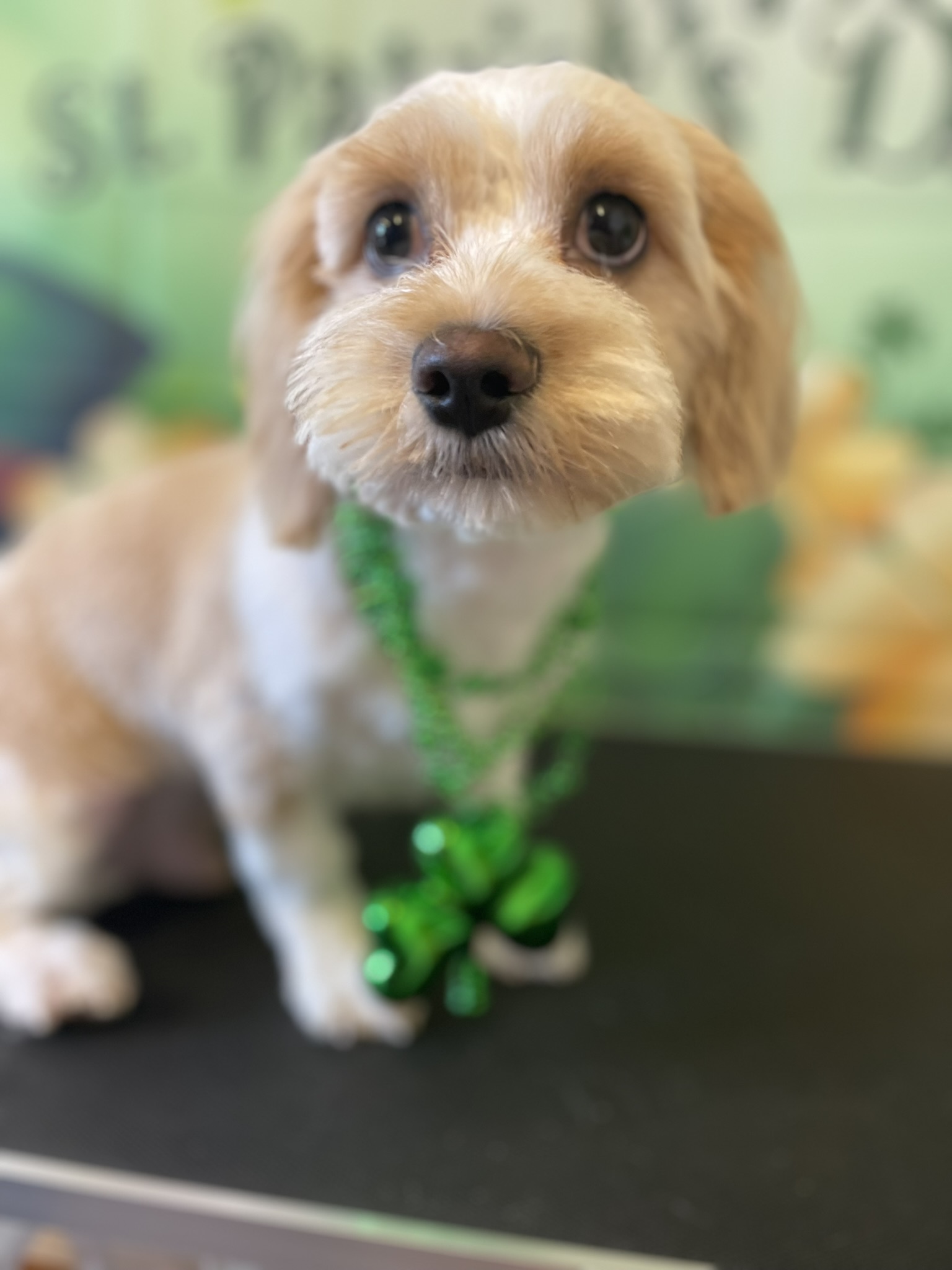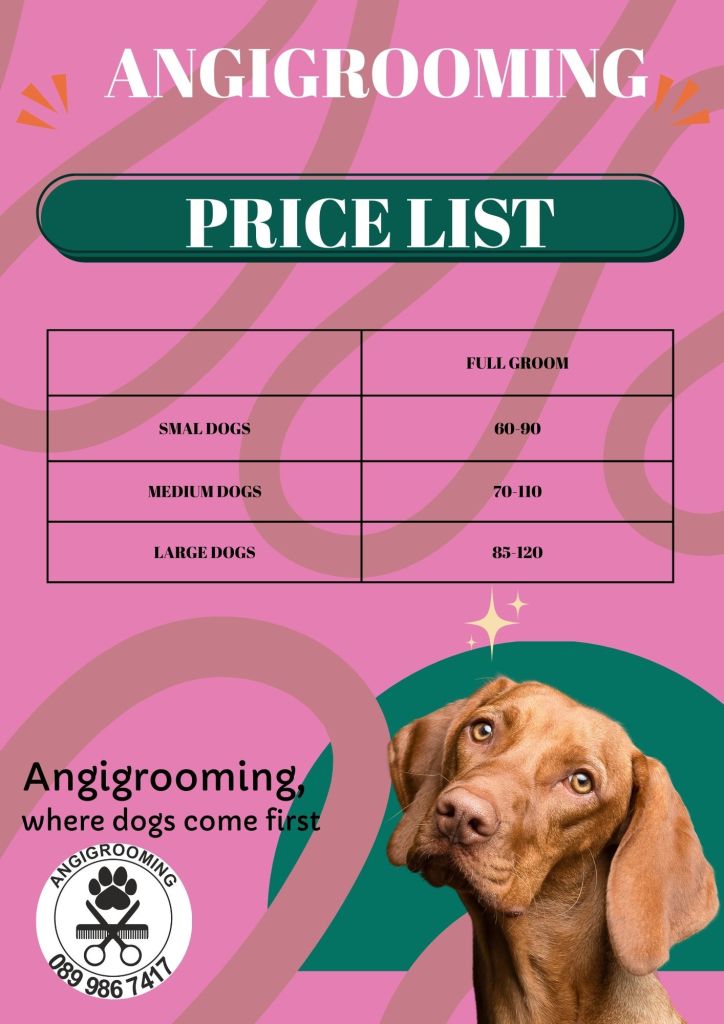 The full groom is a full nose-to-tail professional groom tailored to your dog`s specific breed. It includes a health check, thorough brushing and de-matting if needed (and possible) maintenance of all the hygiene points eyes-ears (plucking if necessary, cleaning), nails trimming, pads trimming and cleaning, bum, and groin clipping followed by a warm bath with shampoo twice, fluff dry, haircut or clip. All clips or trims are breed-specific unless a different style is requested. The cost depends on the size, coat temperament condition, and dog breed.